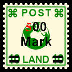 Fake Postage Stamp Over-print Design: postage stamp with genuine postage stamp overprint with deceitful (partly) removed and / or supplemented postage stamp overprint design |