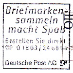 Letter Center Machine Insertion: part of a machine postmark that e.g. shows build-ings from the region of the letter center |