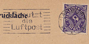Camouflage Machine Postmark: machine postmark without town information, e.g. for field post shipments to conceal the location of troops during a war |