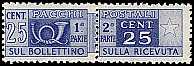 Doppelbriefmarke: Briefmarke die aus Abrechnungsgründen aus 2 Teile besteht (z. B. Paketmarke: die linke Hälfte wurde auf die Paketkarte und die rechte Hälfte auf den Einlieferungsabschnitt aufgeklebt) |