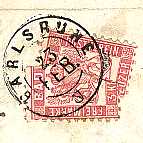 Briefmarke mit Bruch: Briefmarke mit starker Knickung des Papiers bei dem die Papierstruktur verletzt ist |