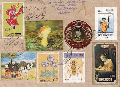 Postwertzeichenmischfrankatur: Postsendung frankiert mit mehreren unterschiedlichen Postwertzeichenarten |