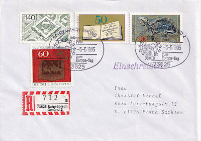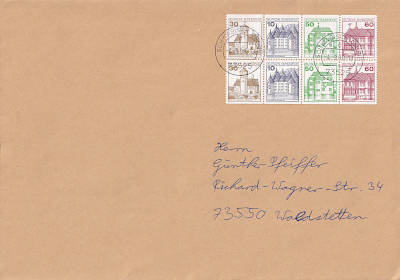 Artenmischfrankatur: Postsendung frankiert mit Frei- und Sonderpostwertzeichen |