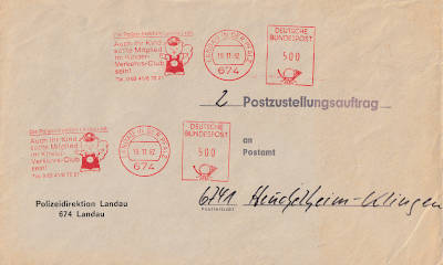 Wertstempelartenmischfrankatur: Post-sendung frankiert mit Frei- und Sonderwert-stempel |