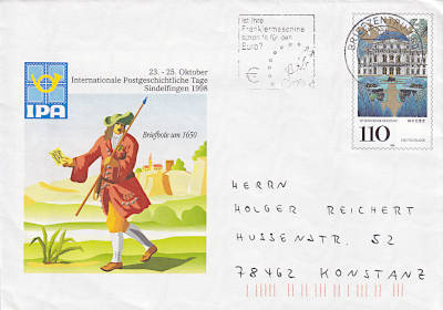 Heftchenblatteinzelfrankatur: Postsend-ung frankiert mit einem einzigen Heftchen-blatt |