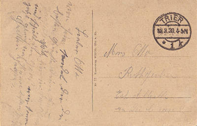 rückseitige Frankatur: Postsendung bei der die Frankatur auf der Rückseite aufgeklebt wurde |