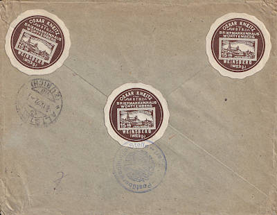 provisorische Frankatur: Postsendung die mit einer behelfsweise geschaffenen Brief-marke frankiert wurde |