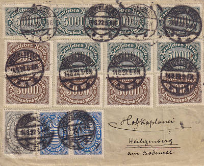 Heftchenblattmehrfachfrankatur: Post-sendung frankiert mit mehreren gleichen Heftchenblätter |