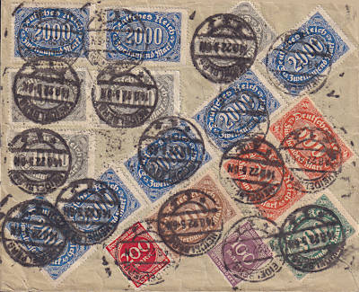 Wertstempelmehrfachfrankatur: Post-sendung frankiert mit mehreren gleichen Wertstempel |