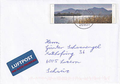 Mischfrankatur: frankiert mit 2 Briefmarken in unterschiedlichen Zeichnungen |