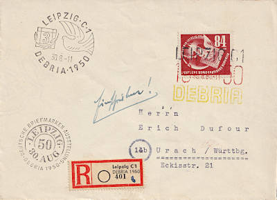 Hinweisvermerk Ausstellung: Vermerk auf einer Postsendung die bei einer Post-dienststelle auf einer Ausstellung aufgege-ben wurde |