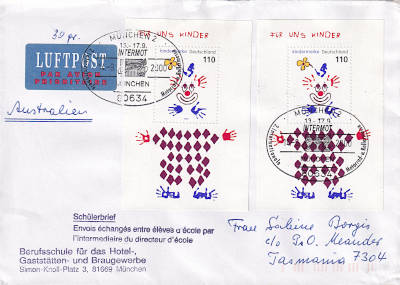 Hinweisvermerk Schülerbrief: Vermerk der auf eine gebührenbegünstigte Grund-sendung für den Versand von Brieffreund-schaftsbriefen zwischen Schülern hinweist die im internationalen Verkehr mit Luftpost zum Landtarif befördert wurden |