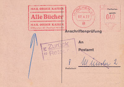 Hinweisvermerk Bücherzettel: Vermerk der auf eine gebührenbegünstigte Grund-sendung für die Bestellung von Bücher und anderen Druckwerken hinweist |
