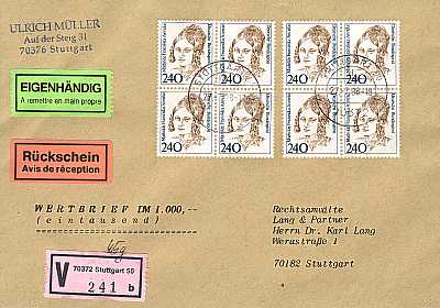 Auslandspostsendung zur Inlandspost-gebühr: Postsendung im grenzüberschreit-enden Verkehr die zur Inlandspostgebühr befördert wurde (z. B. 4 Millionen anstatt 18 Millionen Mark) |