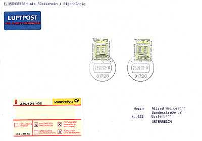 Brief mit Übergabe-Einschreiben und Luftpost |