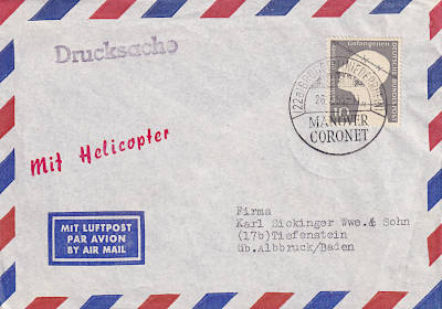 Sonderpostbeförderung Hubschrauber: besondere Beförderung einer Postsendung mit einem Hubschrauber |