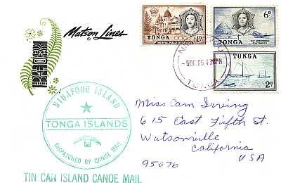 Sonderpostbeförderung Blechkanister: besondere Beförderung einer Postsendung in einem Kanister aus Blech unter Ausnutzung von Meeresströmungen zur oder von der Insel Niuafo´ou (Tonga) |