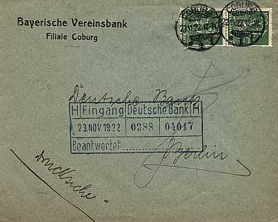 Absenderfreimachungsvermerk: Vermerk auf einer von einem Absender frankiert ein-gelieferten Postsendungen bei der die Über-frankatur nicht von der Post zu verantworten ist (5 DM anstatt 4 DM) |