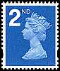 1 ST / 2 ND: descriptive face value on post-age stamps from Great Britain for a domestic letter with accelerated (1 ST = 1st class) or slower (2 ND = 2nd class) transport |
