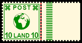Se-tenant forgery: deceitful reprint of a se-tenant, all parts are bogus (postage stamp design print, perforation) |